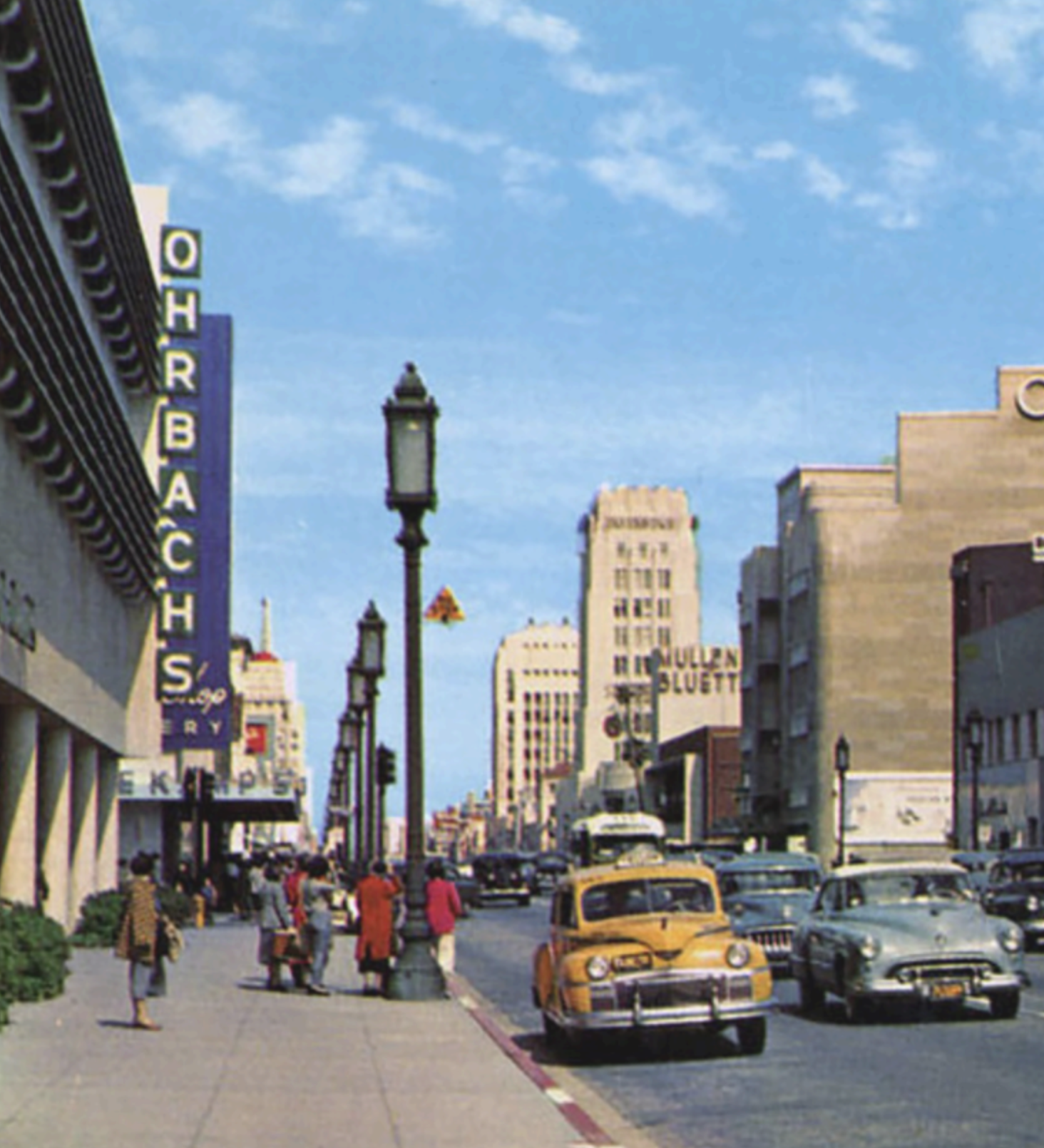 As part of the midcentury movement to meet the modern age, New York developer Norman Tishman reimagined our stretch of Wilshire Boulevard as “Manhattan West” with a series of high rise commercial buildings by the architect Victor Gruen in the style of “Corporate Modernism” that came to be known as The Tishman Complex. Demolition of the Burns home began in 1956 and in just one year, a 12-story office building was erected, becoming the next Tishman building to open its doors to a new era of Los Angeles industry.